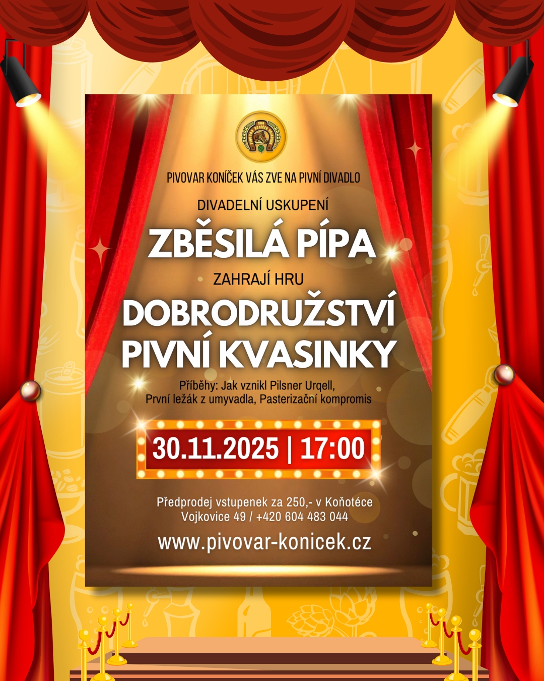 V našem sále pivovaru Koníček se 30.11. od 17hod odehraje další , již třetí, PIVNÍ DIVADLO!